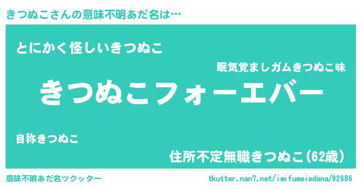 | ポケモン風あだ名 | 『キツヌダネ』『ヒキツヌコ』 |