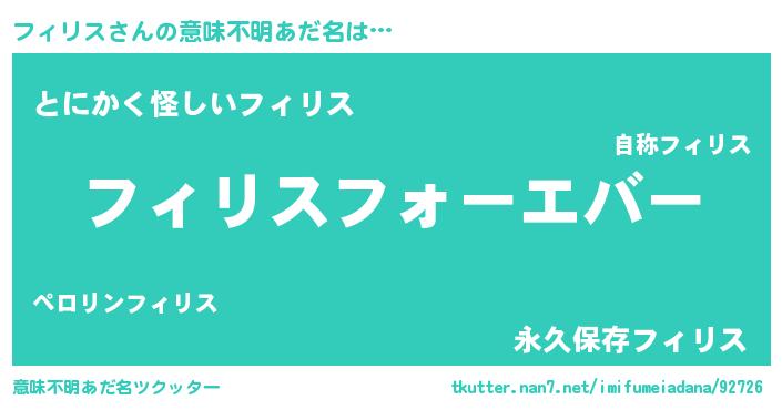 | 欧米人風あだ名 | 『フィリスクリステル』 |