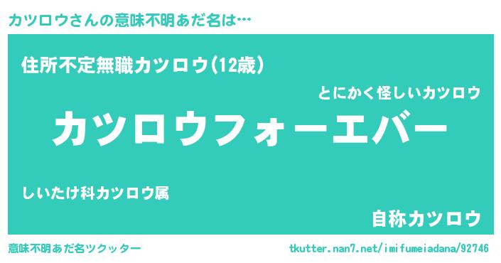 | ファンタジー風あだ名 | 『エターナルカツロウー』『ゼカツトゥ』 |