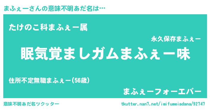 | ヒーロー風カッコイイあだ名 | 『慈愛の使者まふぇー』『ネオマフェー』 |
