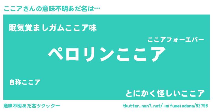 | ヒーロー風カッコイイあだ名 | 『スーパーココア』『正義の使者ここア』 |