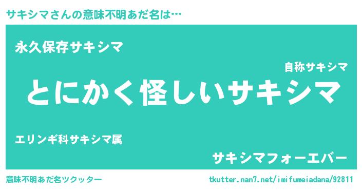 | 男性向けラノベタイトル風あだ名 | 『サキシマの嫁は女の子じゃないと思った?』 |