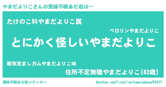 | 欧米人風あだ名 | 『ウサインやまだよりこ』 |