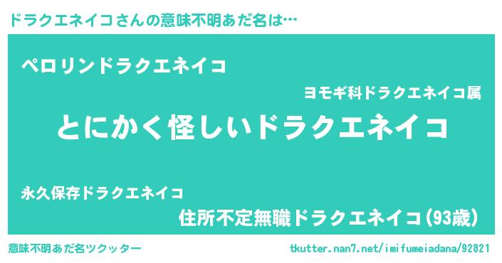 | 欧米人風あだ名 | 『ウサインドラクエネイコ』 |