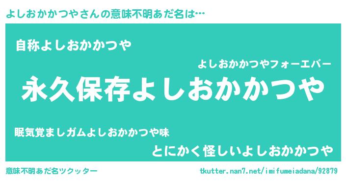 | 女子向けラノベタイトル風あだ名 | 『異世界でカフェよしおかかつやを開店しました。』 |