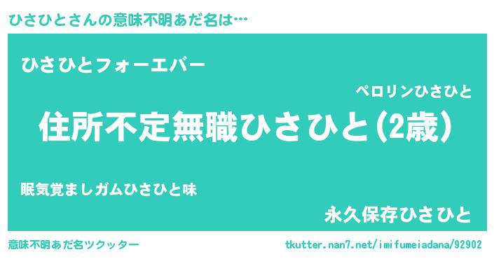 | ヒーロー風カッコイイあだ名 | 『仮面ヒサダー』『ウルトラひさひとマン』 |
