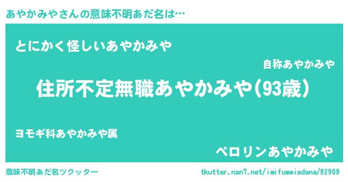 | 男性向けラノベタイトル風あだ名 | 『この素晴らしい世界にあやかみやを!』 |