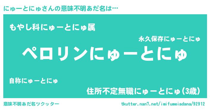| 男性向けラノベタイトル風あだ名 | 『にゅーとにゅの憂鬱』 |