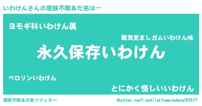 | 男性向けラノベタイトル風あだ名 | 『いわけんという概念が存在しない退屈な世界 』 |