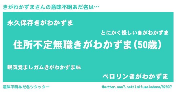 | ヘコむあだ名 | 『きがわかずま(笑)』『きがもー』 |