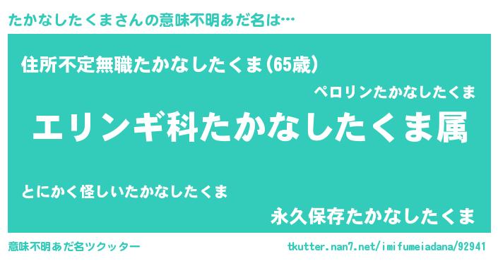 | 欧米人風あだ名 | 『トリンドルたかなしたくま』 |