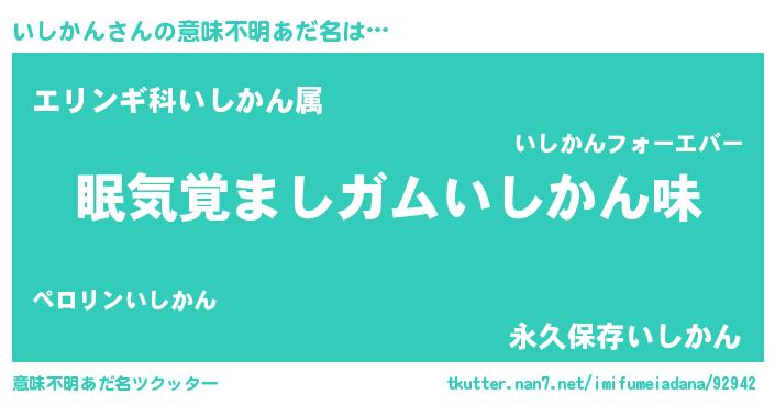 | ヘコむあだ名 | 『いしかん(爆)』『豆乳』『いしにー』 |