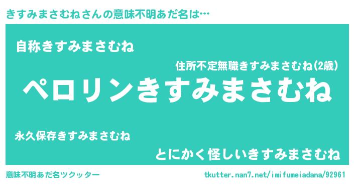 | 男性向けラノベタイトル風あだ名 | 『きすみまさむねの憂鬱』 |