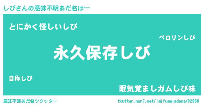 | 男性向けラノベタイトル風あだ名 | 『しびという概念が存在しない退屈な世界 』 |