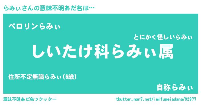 | 胡散臭い通販商品みたいなあだ名 | 『必ず成功する水晶球…その名も「らみぃ」』 |