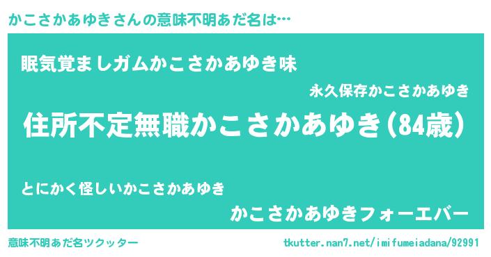 | ヒーロー風カッコイイあだ名 | 『仮面カコダー』『ネオカコサカアユキ』 |