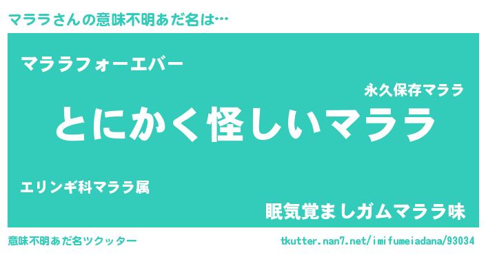 | ポケモン風あだ名 | 『マラゴンZ』『ヒマララ』『ゼニマラ』 |