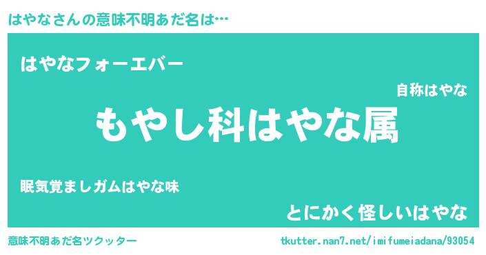 | 男性向けラノベタイトル風あだ名 | 『はやなに滅ぼされるだけの簡単なお仕事です』 |