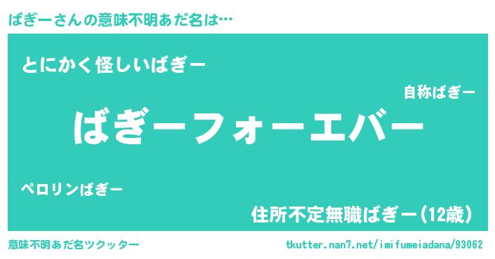 | ヒーロー風カッコイイあだ名 | 『ウルトラばぎーマン』『天弓騎士バギ』 |