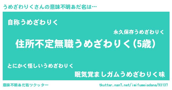 | ヘコむあだ名 | 『うめざわりく(小並感)』『うめぷりん』 |