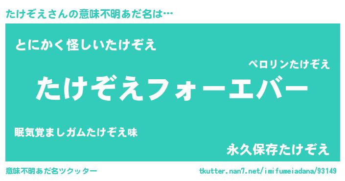 | ファンタジー風あだ名 | 『エターナルタケゾエー』『タケフェル』 |
