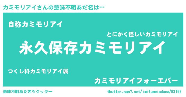 | 男性向けラノベタイトル風あだ名 | 『カミモリアイという概念が存在しない退屈な世界 』 |