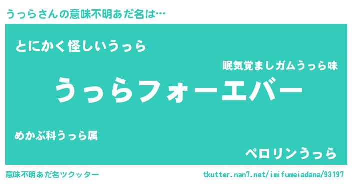| ヒーロー風カッコイイあだ名 | 『ウルトラうっらマン』『幻影騎士ウッ』 |