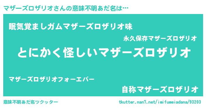 | 男性向けラノベタイトル風あだ名 | 『マザーズロザリオの嫁は女の子じゃないと思った?』 |