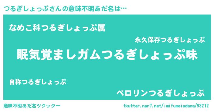 | 男性向けラノベタイトル風あだ名 | 『おまえをオタクにしてやるから、俺をつるぎしょっぷにしてくれ! 』 |