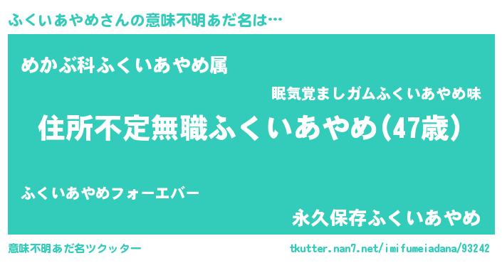 | 欧米人風あだ名 | 『ダレノガレふくいあやめ』 |
