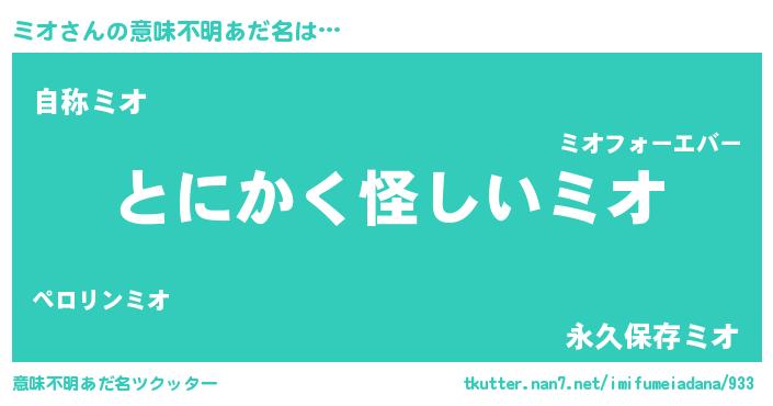 | 肩書あだ名 | 『ミオ班長』『ミオ総統』『ミオ教頭』 |