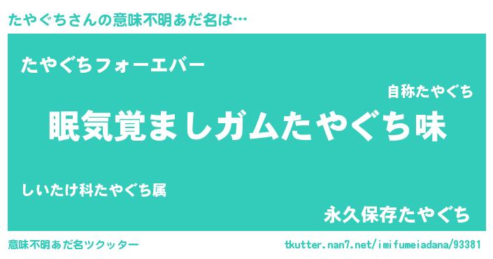 | ヒーロー風カッコイイあだ名 | 『天空の使者たやぐち』『ネオタヤグチ』 |