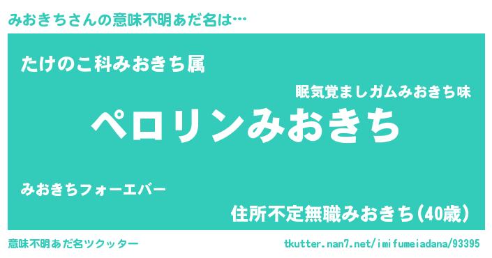 | 胡散臭い通販商品みたいなあだ名 | 『億万長者になれるブレスレット…その名も「みおきち」』 |