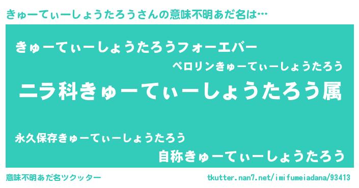 | 男性向けラノベタイトル風あだ名 | 『きゅーてぃーしょうたろう~年齢イコール彼女いない歴の魔法使い~』 |