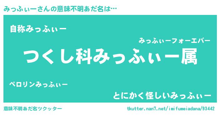 | 男性向けラノベタイトル風あだ名 | 『みっふぃー~年齢イコール彼女いない歴の魔法使い~』 |