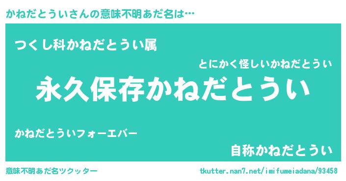 | 男性向けラノベタイトル風あだ名 | 『うちのかねだとういが世界を掌握している!』 |