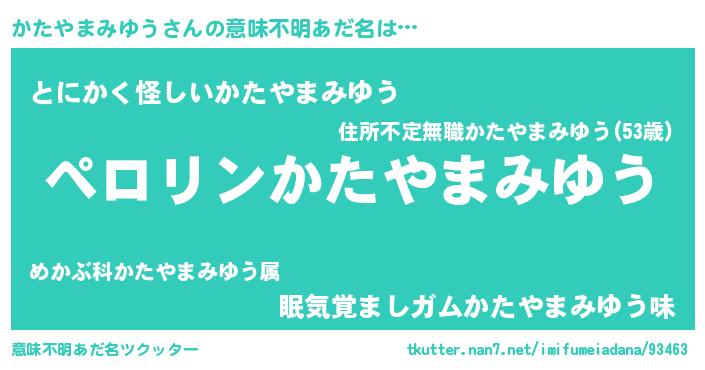 | 男性向けラノベタイトル風あだ名 | 『かたやまみゆうの憂鬱』 |