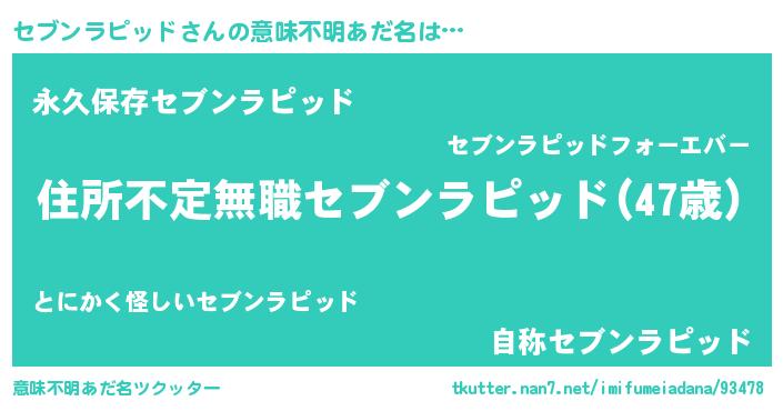 | ヘコむあだ名 | 『セブンラピッド(笑)』『なまこ酢』 |