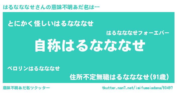| 男性向けラノベタイトル風あだ名 | 『Re:はるなななせから始める異世界生活』 |