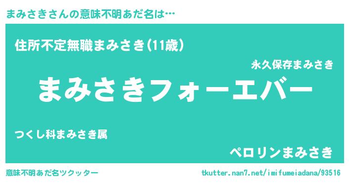| 男性向けラノベタイトル風あだ名 | 『うちのまみさきが世界を掌握している!』 |