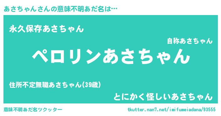 | 男性向けラノベタイトル風あだ名 | 『あさちゃんの憂鬱』 |