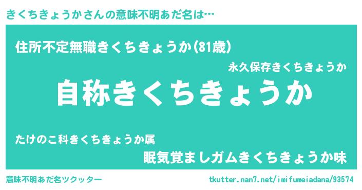 | 男性向けラノベタイトル風あだ名 | 『きくちきょうかに滅ぼされるだけの簡単なお仕事です』 |
