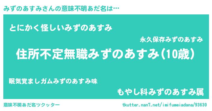 | ポケモン風あだ名 | 『ミーズイ』『ヒミズノアスミ』 |