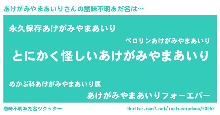 | ヘコむあだ名 | 『あけ太郎』『あけがみやまあいり(苦笑)』 |