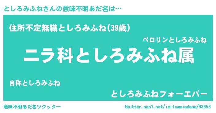 | 男性向けラノベタイトル風あだ名 | 『としろみふね~年齢イコール彼女いない歴の魔法使い~』 |