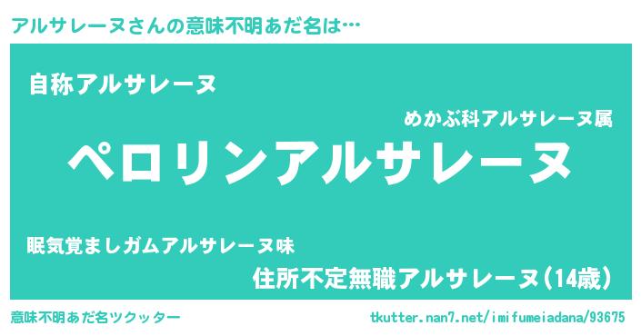 | 男性向けラノベタイトル風あだ名 | 『アルサレーヌアートオンライン』 |