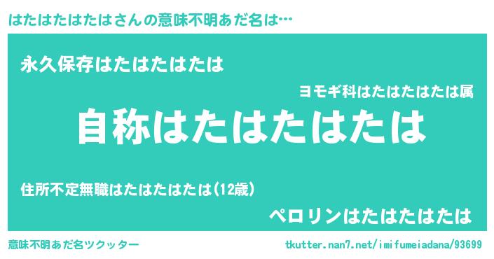 | 男性向けラノベタイトル風あだ名 | 『Re:はたはたはたはから始める異世界生活』 |