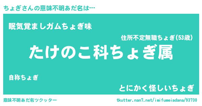 | ヒーロー風カッコイイあだ名 | 『愛の使者ちょぎ』『幻影騎士チョ』 |