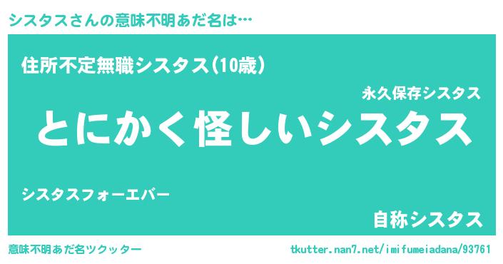 | 男性向けラノベタイトル風あだ名 | 『シスタスの嫁は女の子じゃないと思った?』 |