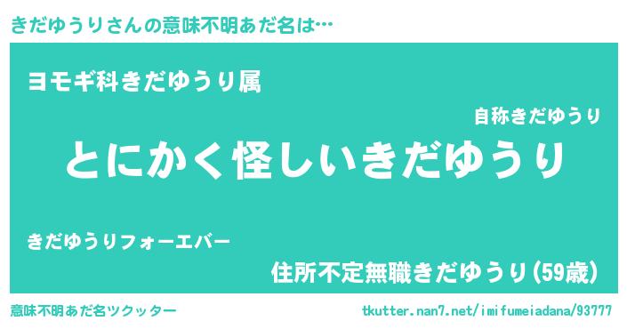 | 男性向けラノベタイトル風あだ名 | 『きだゆうりの嫁は女の子じゃないと思った?』 |